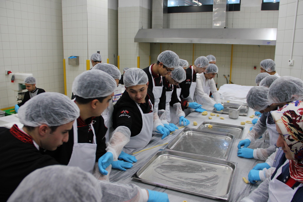 Mutfak Bölümü öğrencisi liseli gençler, Lojistik Destek Merkezi’nin pastane bölümünde ise kendileri için hazırlanan workshop’a katıldı. İBB Sosyal Tesisleri ziyaretçilerinin en çok sevdiği lezzetlerden biri olan paçanga böreğinin nasıl hazırlandığını uygulamalı olarak öğrenen gençler sonrasında ise tatlı ve tuzlu kurabiyeler hazırladılar. Lojistik Destek Merkezi Pastane Bölümü şeflerinden en leziz tuzlu kurabiyeler ve ağızda dağılan enfes un kurabiyelerinin hazırlanışı ile ilgili püf noktaları öğrenen öğrenciler, reçeteleri uygulama imkanı da yakaladılar. 2 saatlik workshop’un ardından tepsi tepsi kurabiyeler hazırlayan gençler, Lojistik Destek Merkezi ziyaretinin kendileri için unutulmaz bir deneyim olduğunu dile getirdiler.