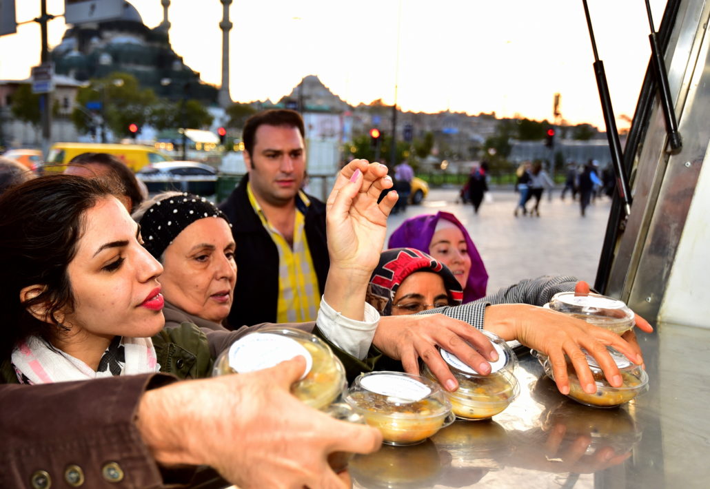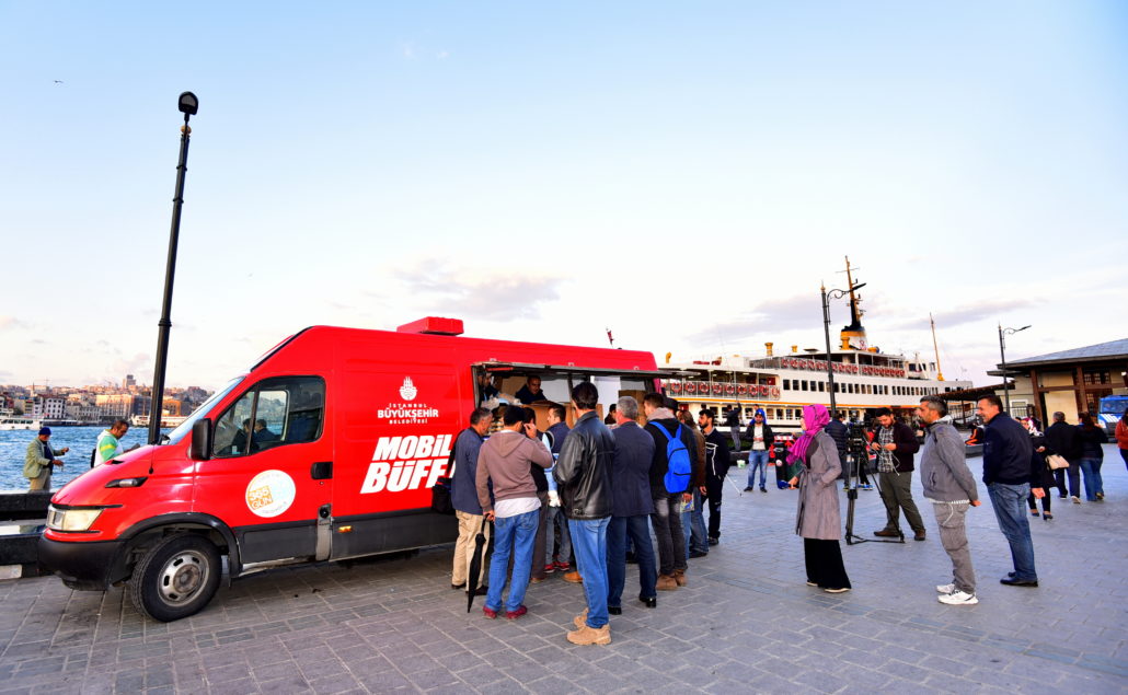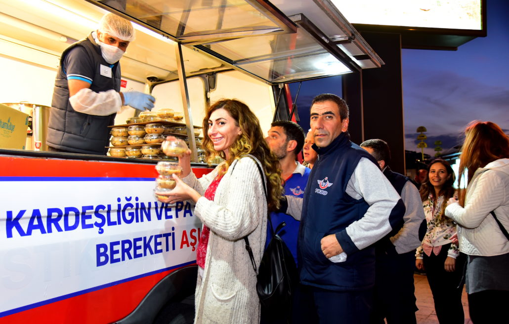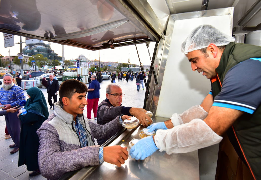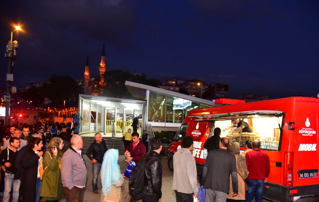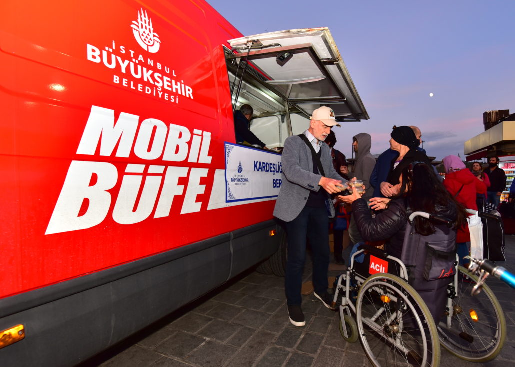 Olağanüstü durumlarda İstanbulluların gıda gereksinimlerine acil çözümler sunan Mobil Büfeler bu defa paylaşmanın simgesi Aşure dağıtımı için yollardaydı. İstanbul’un en hareketli noktalarından Yenikapı ve Üsküdar Marmaray çıkışları, Eminönü ve Beşiktaş İskeleleri ile Şişli Meydanı ve Mecidiyeköy Metrobüs Durağı’nda konumlandırılan Mobil Büfeler sayesinde kısa sürede binlerce aşure vatandaşlara ikram edildi. Ayrıca çeşitli ilçelerde kurulan 30 İBB İletişim Noktası’nda da vatandaşlar aşurelerle karşılandı.