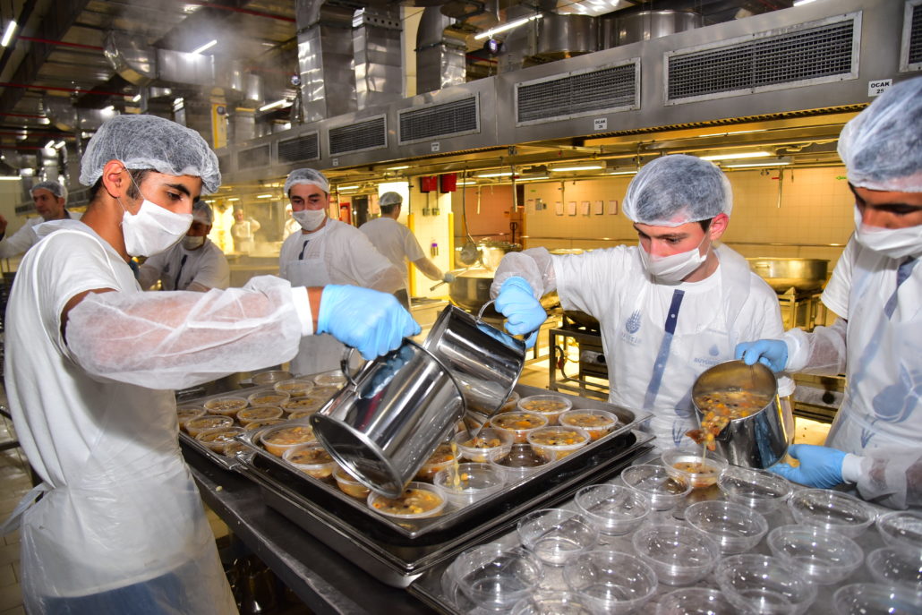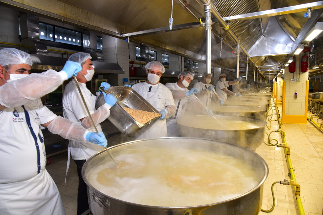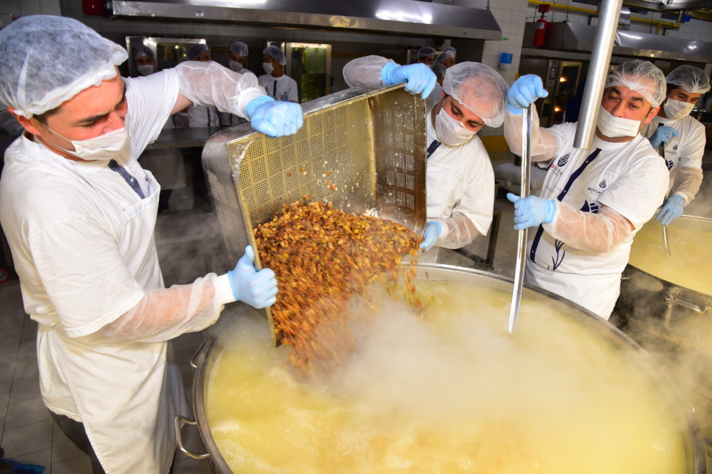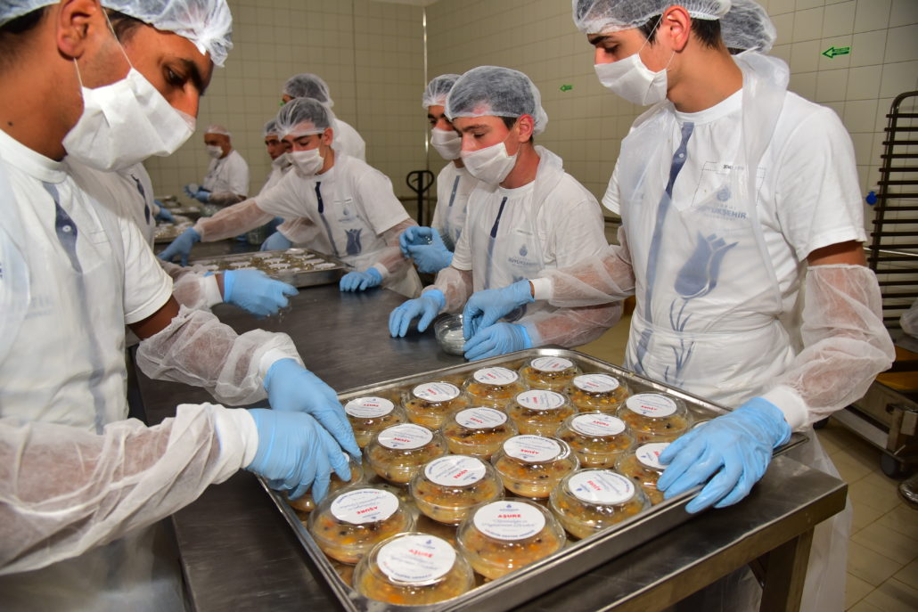 7 gün 24 saat esasıyla İstanbul için hizmet üreten İBB Lojistik Destek Merkezi’nin dev mutfaklarında, üstün hijyenik koşullarda üretilen aşurelerin hazırlanmasında 20 ödüllü aşçı 2 gün boyunca özenle çalıştı. İstanbulluların ağızlarını tatlandıran aşureler için buğdayından nohuduna, kayısısından üzümüne, fındığından şekerine kadar tam 3,5 ton malzeme kullanıldı.