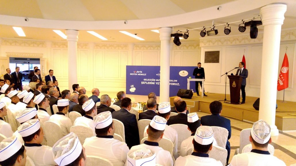 Sertifika töreninde konuşan İBB Genel Sekreteri Hayri Baraçlı söze tüm öğretmenlerin Öğretmenler Günü’nü kutlayarak başladı. Baraçlı, “Bugün burada genç arkadaşları görünce heyecanlandım. Bugün burada Başkanımız Kadir Topbaş’ın eğitime verdiği önemin bir yansımasını görüyoruz” dedi. Çırak aşçı ve garsonlara seslenen Baraçlı, “Sizler bizlere belki de yemek yemeyi öğreteceksiniz. Yalnızca karnımızı doyurmak için değil gözümüzü ve gönlümüzü doyurmak için yemek yemeliyiz. Bunu da bizlere öğretecek olan sizlersiniz. Siz değerli arkadaşlarımız Büyükşehir Belediyesi’nden aldığınız bu eğitimle hem İstanbul’da hem Türkiye’de hem de dünyada marka olma yolunda hareket edeceksiniz. Bizler de İBB olarak sizlere destek vereceğiz” ifadelerini kullandı.