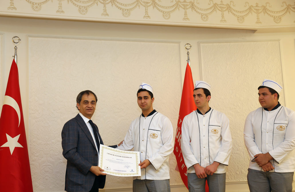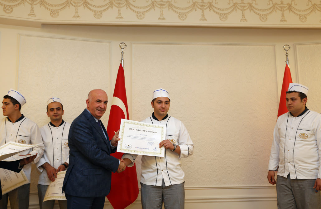 İstanbul Büyükşehir Belediyesi mutfaklarında aldıkları uygulamalı eğitimleri başarıyla tamamlayarak sertifikalarını alan 76 aşçı ve garson çırağı, İBB Sosyal Tesisleri ve Lojistik Destek Merkezi’nde istihdam edildi. Sertifika töreninde konuşan İBB Genel Sekreteri Hayri Baraçlı, mezun gençlere “Hem İstanbul’da hem Türkiye’de hem de dünyada marka olma yolunda hareket edeceksiniz. Bizler de İBB olarak sizlere destek vereceğiz” dedi.