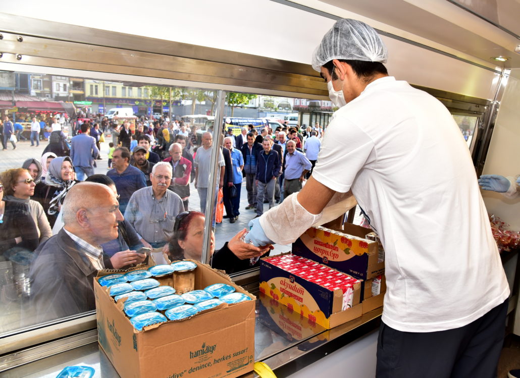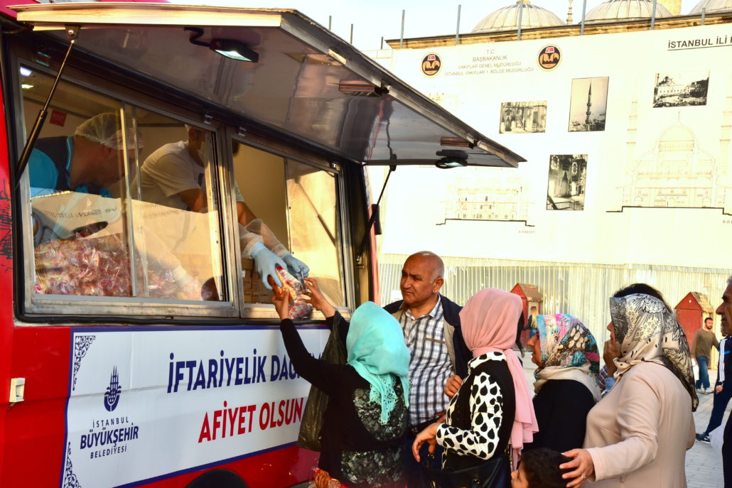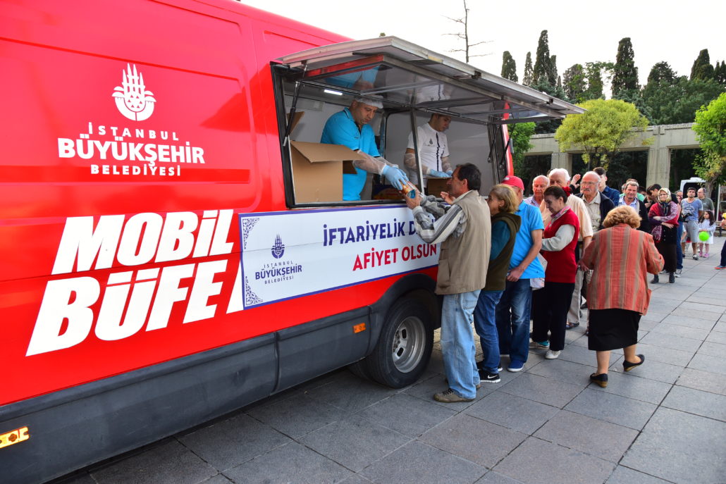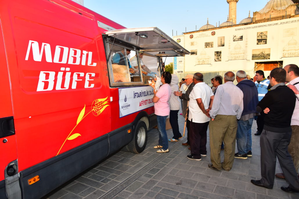 Mobil Büfeler, iftara bir saat kala görev noktalarındaki yerlerini alıyor ve ezan okunmasına yakın iftariyelik kumanya dağıtımına başlıyor. Uygulamadan oldukça memnun olduklarını ifade eden vatandaşlar, evlerine yetişemeseler de oruçlarını açmalarına vesile olan İstanbul Büyükşehir Belediyesi’ne teşekkürlerini iletiyorlar.