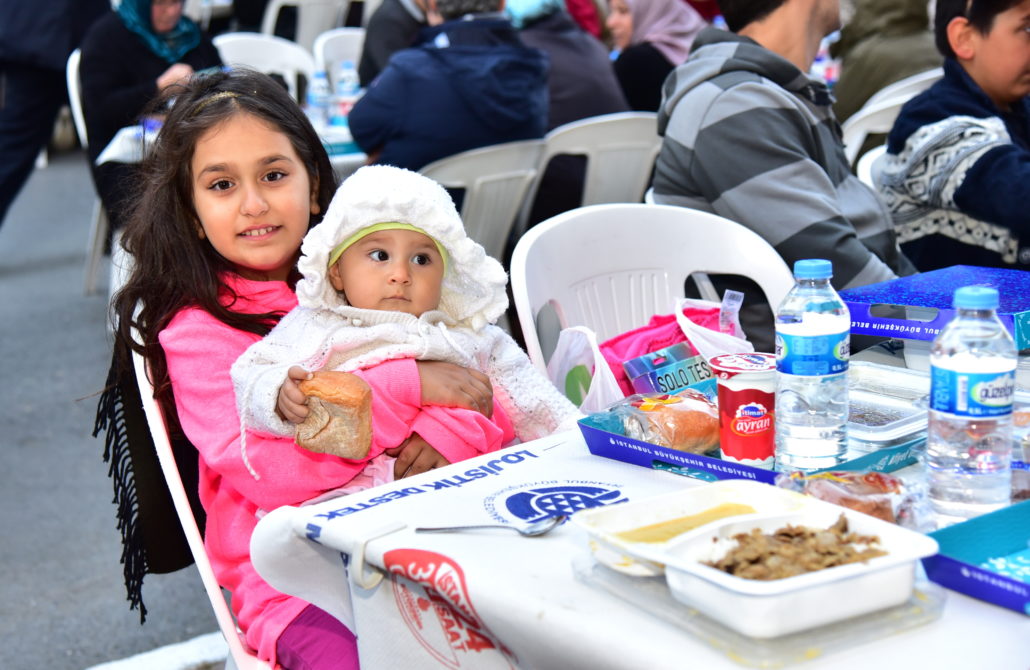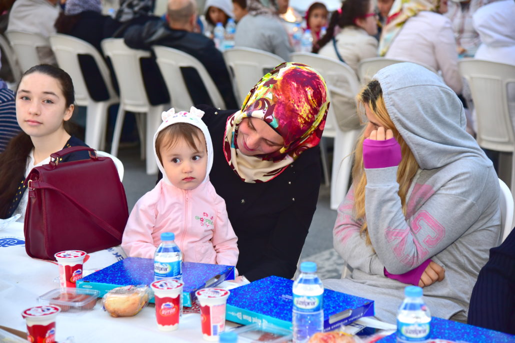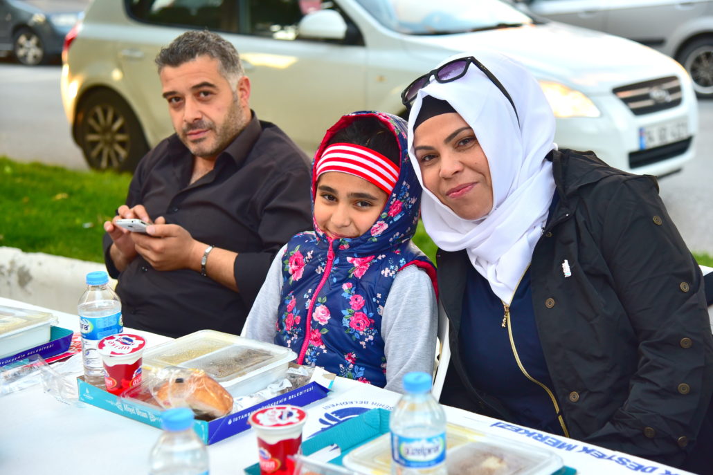 Ramazan ayının ilk gününden itibaren İstanbul’un çeşitli semtlerinde kurulan sofralarda her gün toplam 20 bin İstanbullu aynı anda orucunu açarken bu sofralardan biri de Beylikdüzü Adnan Kahveci Mahallesi’nde kuruldu. 3 bin 500 kişilik İBB Açık Hava İftar Sofrası’nda bir araya gelen mahalle sakinleri serin havaya aldırış etmeden birlikte iftar yapmanın maneviyatını doyasıya yaşadı. Kimilerinin tüm aile boyu yer aldığı iftar sofralarında tek başlarına yer alan onlarcası da kalabalık sofraların hazzını yaşadı.