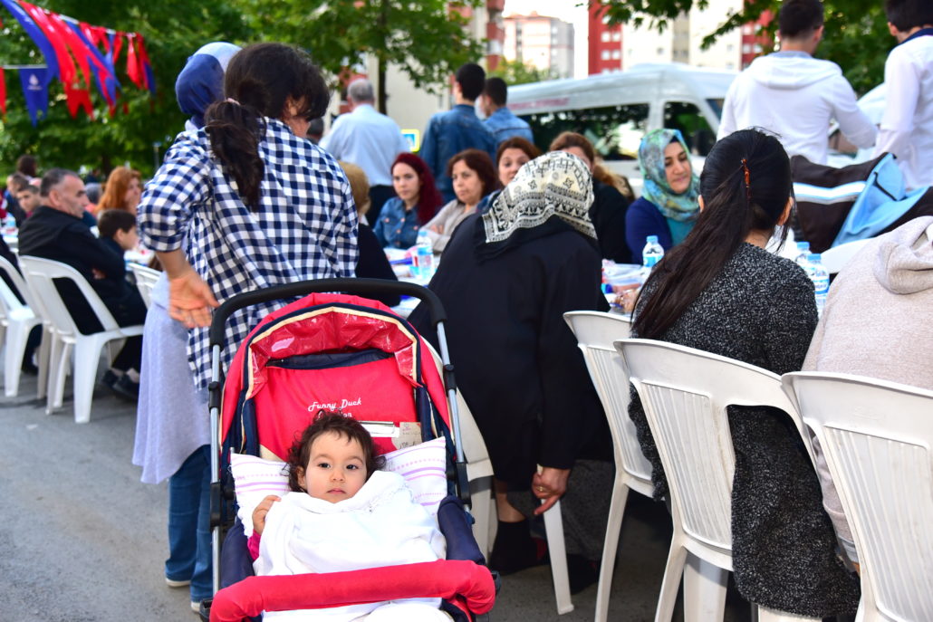 Rüzgarın etkisiyle oldukça serin bir hava olmasına rağmen Adnan Kahveci Mahallesi Açık Hava İftarı’nda tek bir sandalye dahi boş kalmadı. Ramazan’ın bereketi ve maneviyatından istifade etmek isteyen aileler serin havaya rağmen ufak bebekleri ile sofradaki yerlerini aldılar. 9 aylık torunu ile geldiklerini anlatan Fatma Yergün, “5 yıldır İstanbul Büyükşehir Belediyesi Açıkhava İftarları’na katılırım. Bu güzellikleri çocuklarım da torunlarım da görsün, yaşasın istiyorum. Yavrularımız, birlik ve beraberlik duygularını, maneviyatı küçük yaşlardan itibaren kazansınlar” diye konuştu.